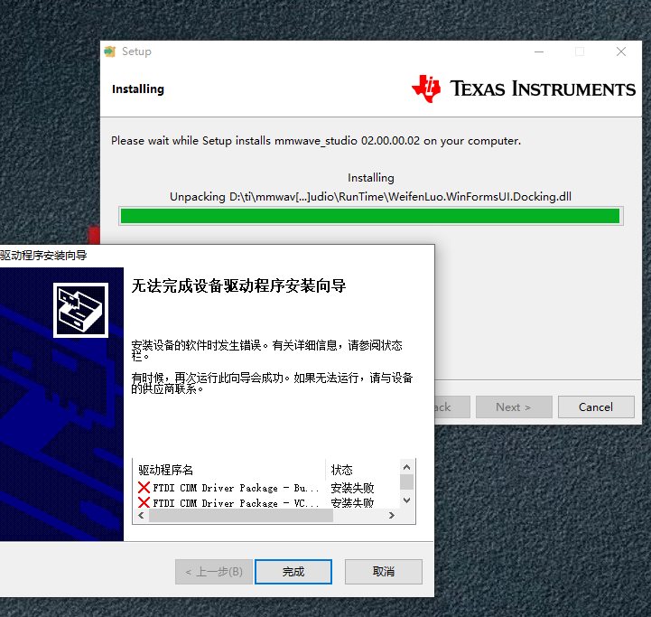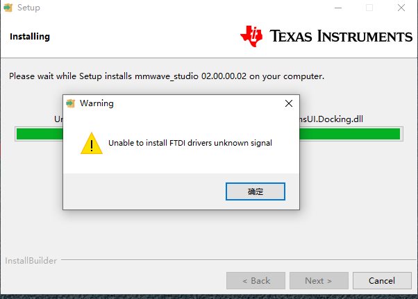 你好,在安装mmwavestudio-2.0.0.2的时安装FDTI驱动时提示安装失败,截图如下,这个需要怎么处理