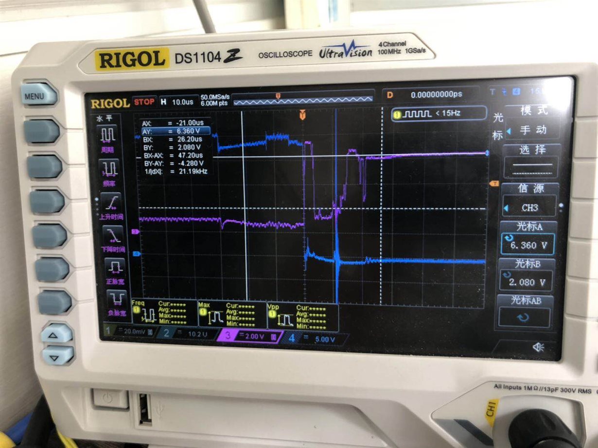 在测试过程中发现,当S1闭合后,系统会有约24A的电流,一切正常,再闭合S2,系统在短时间内触发过流保护(有单片机检测Ibat信号并操作S1开关),软件保护电流值设置在44A左右。