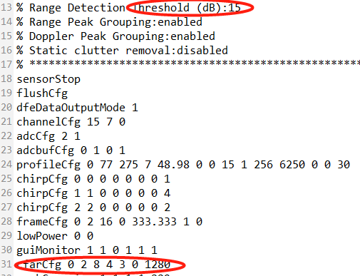 请问我想配置AWR1443的Range_Detection_threshold阈值应该在哪里设置?我在.cfg配置文件可以修改吗?还有角度分辨率在