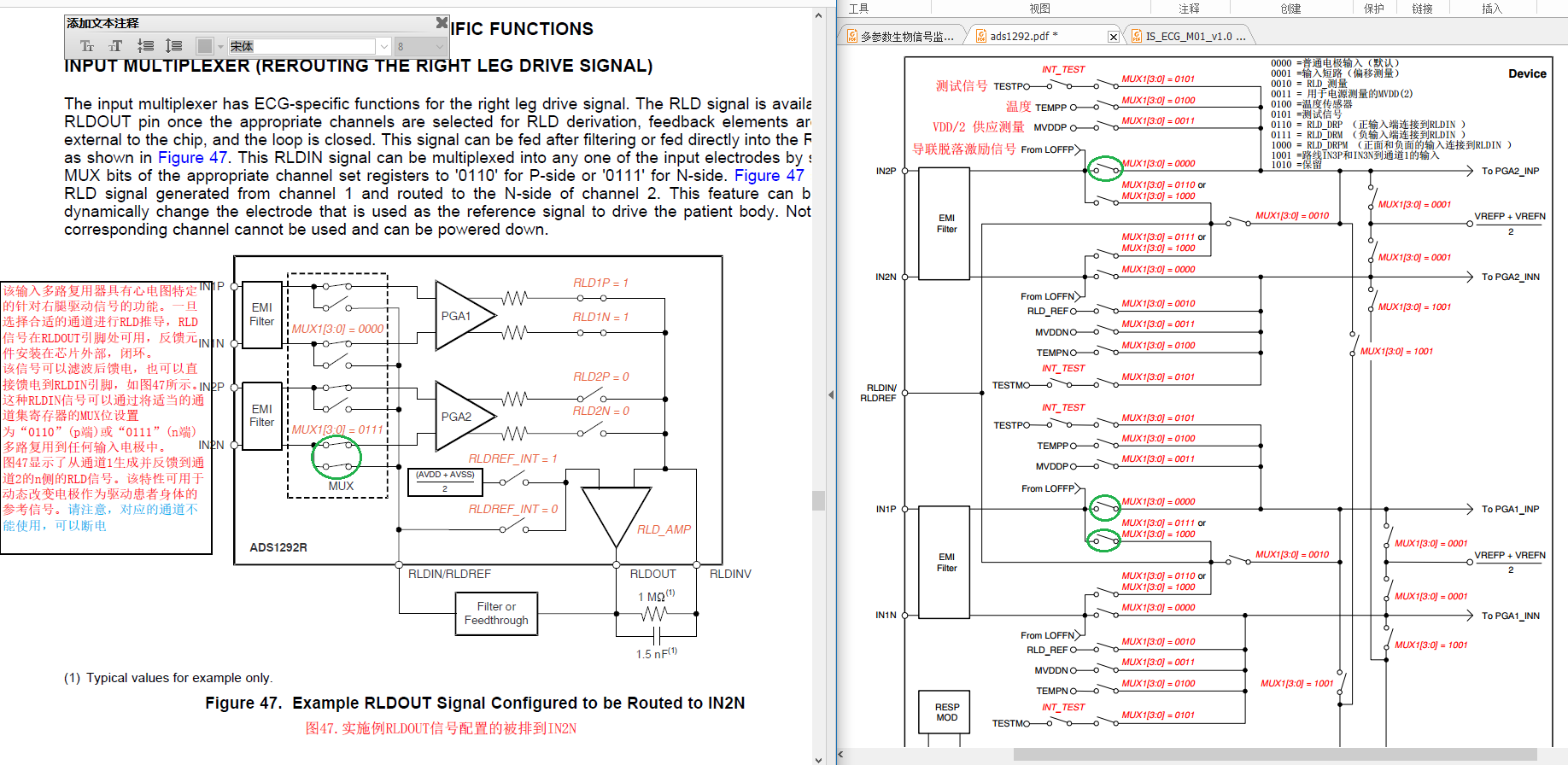 如左图所示,为什么MUX设置成 0111,普通电极输入的开关也会闭合?是受连锁控制吗?