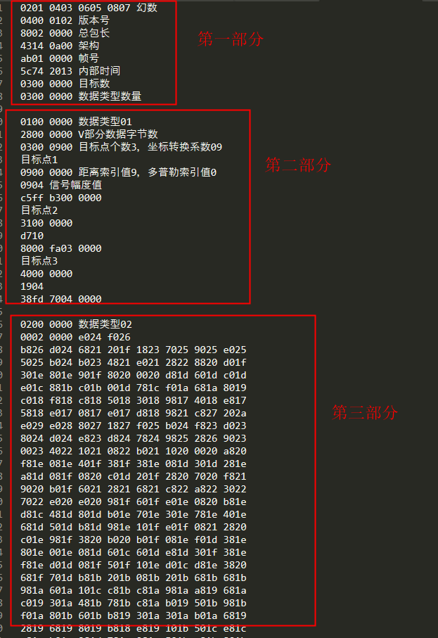如题,我用IWR1443做demo演示的时候,使用mmWave_Demo_Visualizer保存了采集上来的数据,我想问下这些数据帧内容该如何解析,我分析到里面有些包头,版本号的一些信息,关于目标点的信息如何去解析,我看了很多的user guide好像没有提到如何去解析这些数据