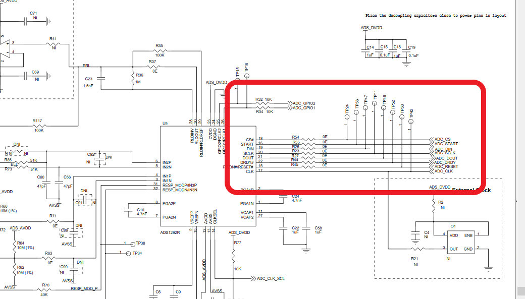 ADS1292R输出的数据是通过SPI通信的,从上图板子原理图可以看出,引出了SPI通信的测试点,没有专门的通信接口。