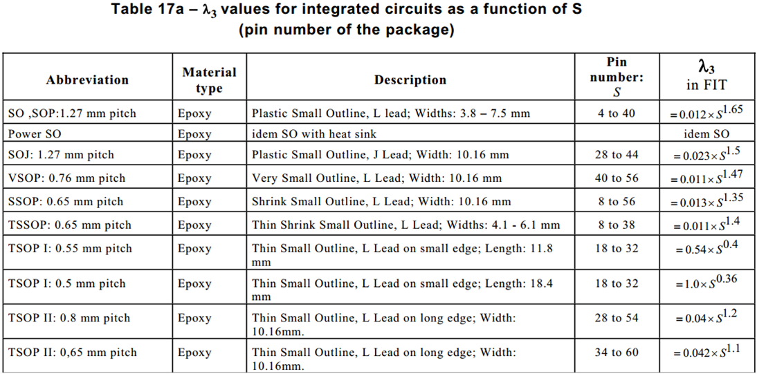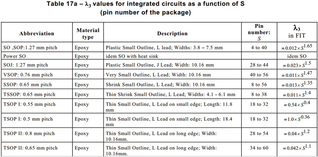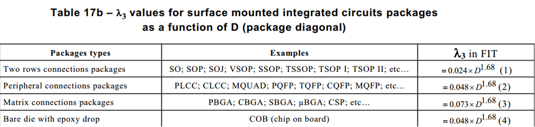 D.请选择该芯片适用项请根据芯片的属性,选择表17中的一行(表17a或者表17b中进行选择,如果芯片的失效率与pin number of the package有关,请在表17a中选择一行,如果芯片的失效率与package diagonal有关,请在表17b中选择一行)