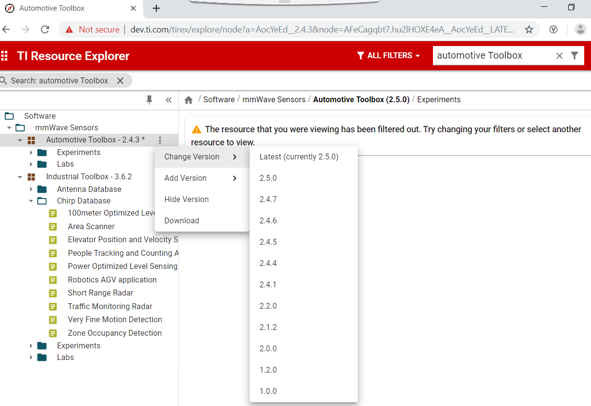 您可以到TI Resource Explorer网站,search automotive toolbox,如下图,选择您要下载的版本。http://dev.ti.com/tirex/explore/node?node=AHJY4qNCowO17wH-P2ICKQ
