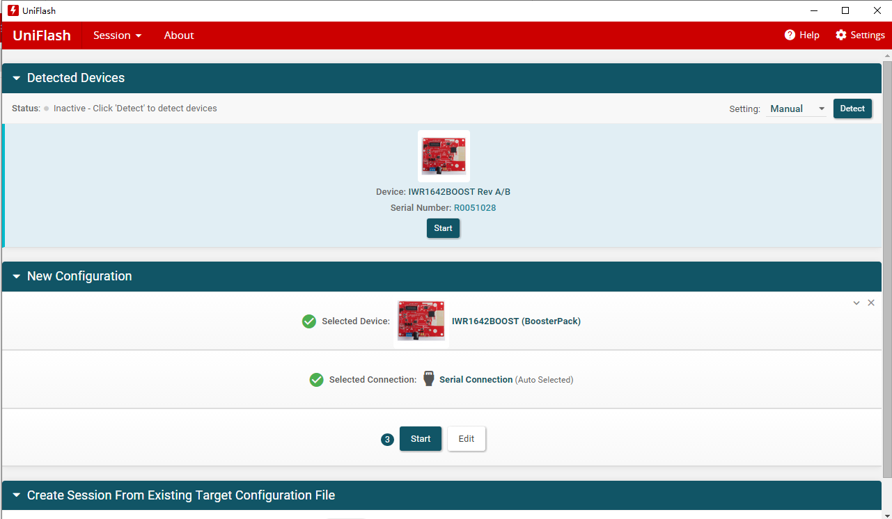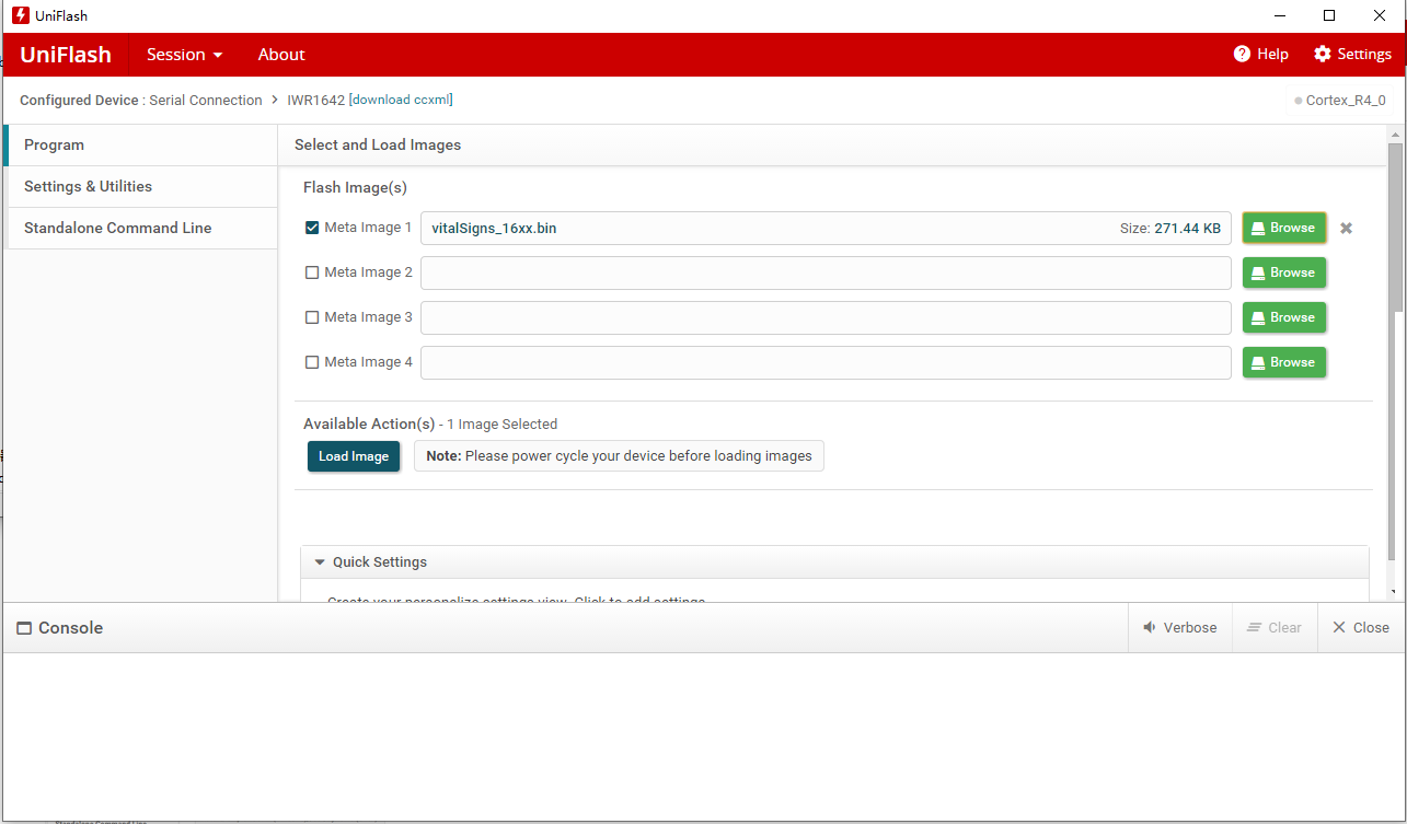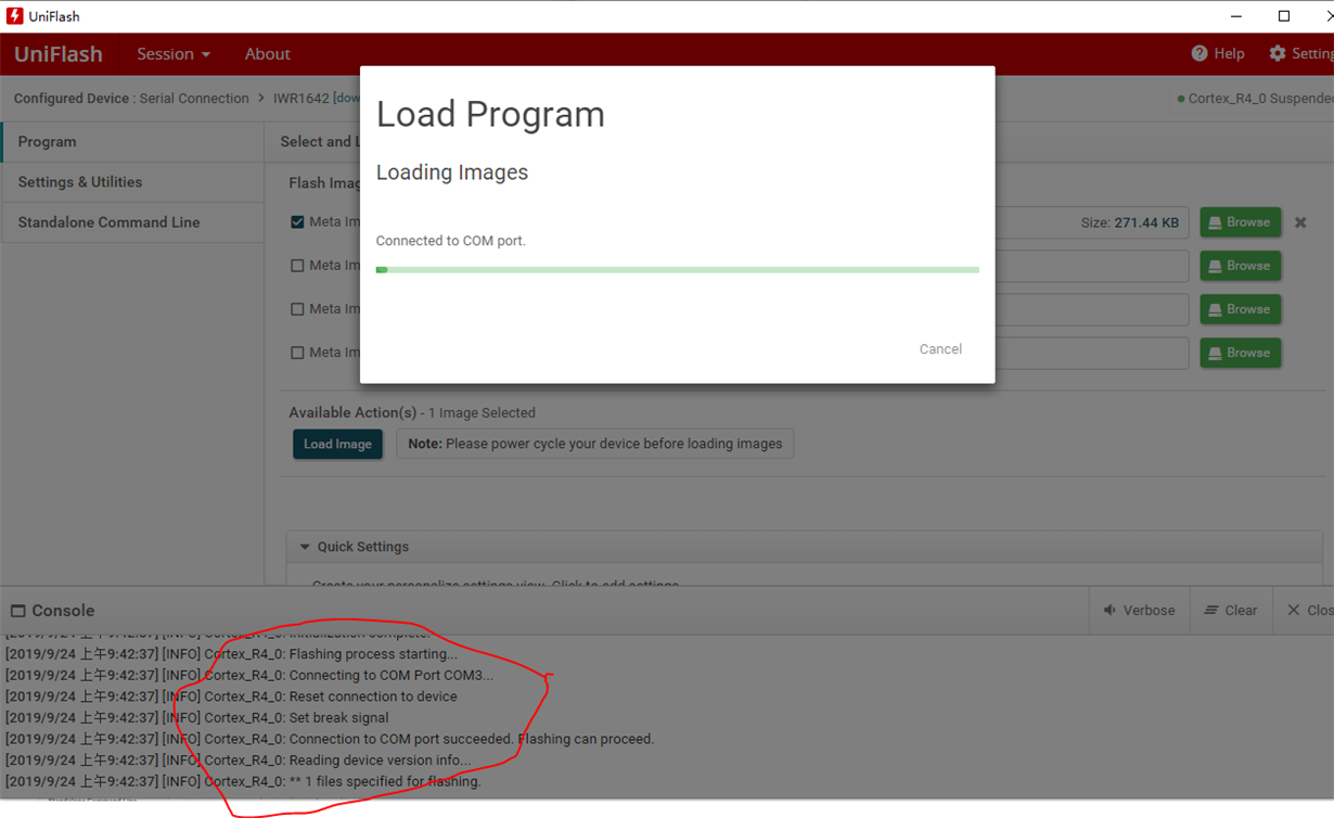 在使用uniflash往AWR1642 BOOST开发板烧程序时,停止不动,不报错。