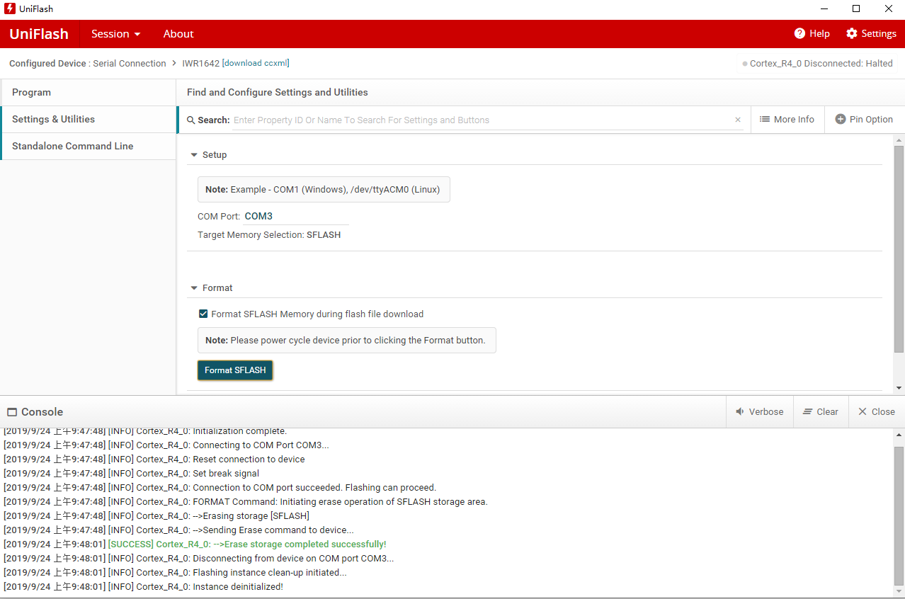 求助:使用uniflash 往 AWR1642 BOOST 开发板烧程序失败