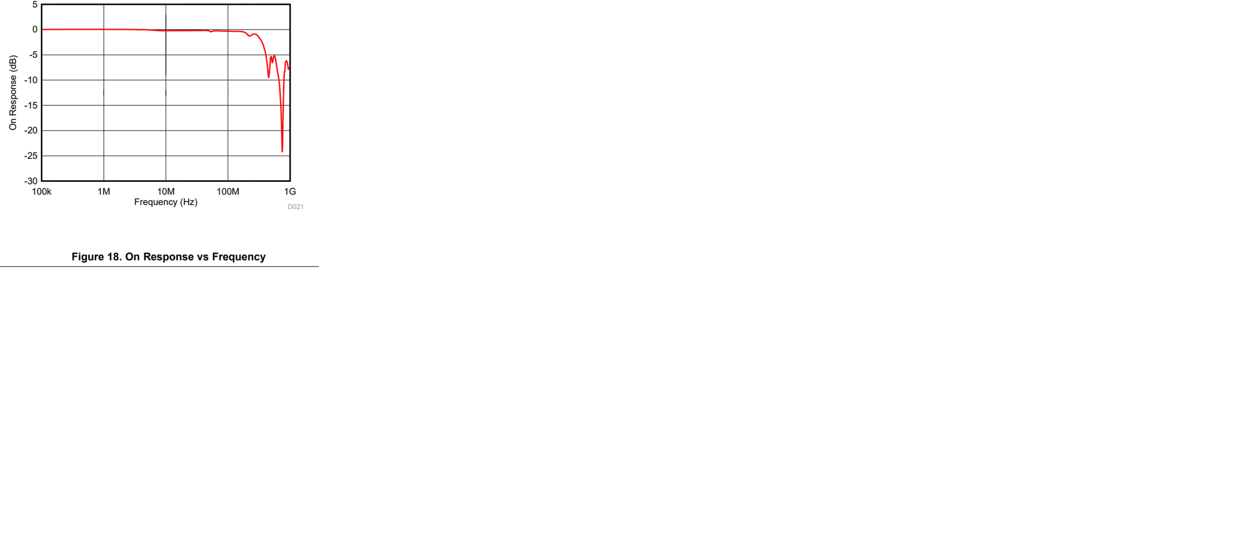 上电后,我在D口用信号发生器输入一个振幅为5V的正弦波信号(频率分别是1kHz、1MHz、3MHz、8MHz、24MHz、32MHz、48MHz、64MHz),在24MHz及以下是峰峰值均为10V,频率均正确,但是在32MHz时,示波器测量出:频率32MHz,峰峰值为5V左右;48MHz时,示波器测量出:频率48MHz,峰峰值为4V左右;64MHz时,示波器测量出:频率64MHz,峰峰值为3V左右(我查过mux36s16的带宽是500MHz,最大衰减是3dB),为什么会衰减这么厉害呢。(输出端没有接负载,直接在输出端接示波器测量)