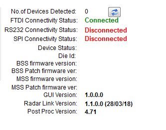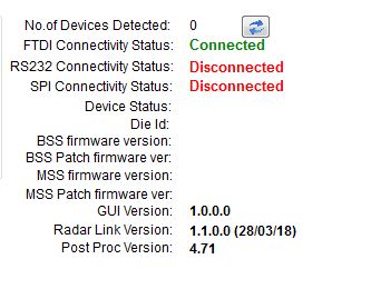 谢谢回复,此问题已解决。但是我打开mmwave studio时,检测不到设备,多次点击刷新还是不行,也试了换更低版本的mmwave studio ,还是不行。请问,我该怎么解决呢?谢谢!
