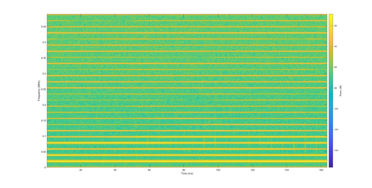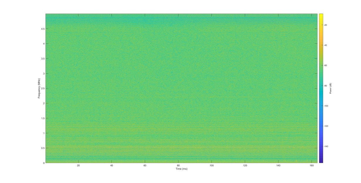 采用IWR1642+DCA1000进行数据的ADC Raw data的收集,送入matlab处理后,用spectrogram从.bin中读取到的复数信号的时频图,恳请哪位能帮忙解释一下下列图中出现的条纹。理论结果不应该是,距离一定距离外的某个物体才会对应某个频率吗,为什么会有这么多条纹呢??结果如下(图二是图一纵坐标放大后的):