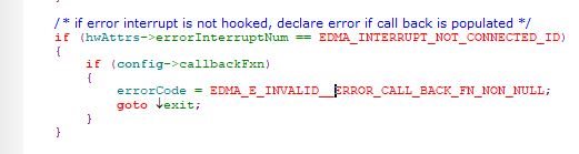 System_printf("Debug: EDMA_configErrorMonitoring() failed with errorCode = %d\n", retVal);