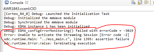 但是进入仿真运行程序,会提示EDMA初始化错误,如下图