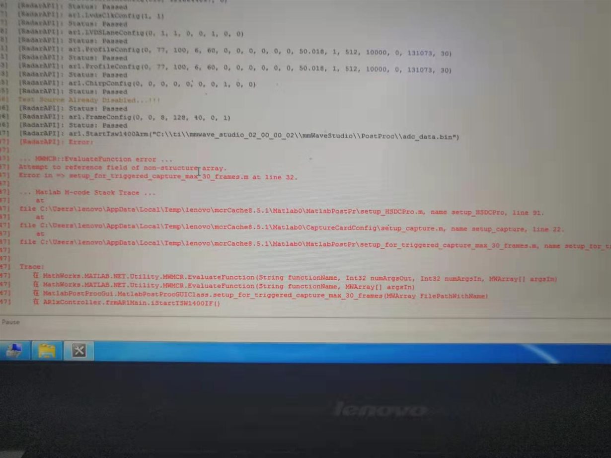 并且点击DCA1000ARM按钮后会报错