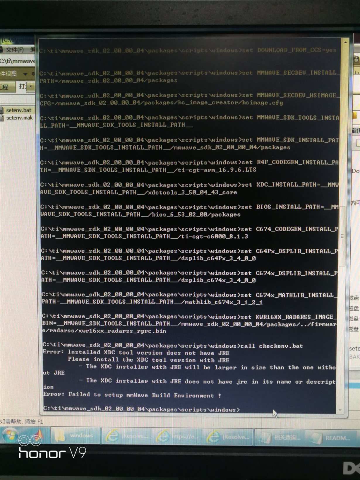 还是出现了问题,请问MMWAVE_SDK_INSTALL_PATH=mmwave_sdk_<ver>\packages这个直接这样写吗?但是改完之后cmd中调用setenv.bat还是出现问题
