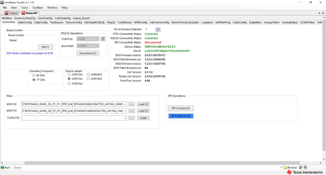 [14:45:55]  [RadarAPI]: ar1.DownloadBSSFw("C:\\ti\\mmwave_studio_02_01_01_00\\rf_eval_firmware\\radarss\\xwr12xx_xwr14xx_radarss.bin")