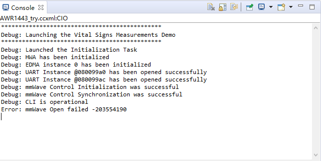 CCS显示ERROR: mmWave open failed