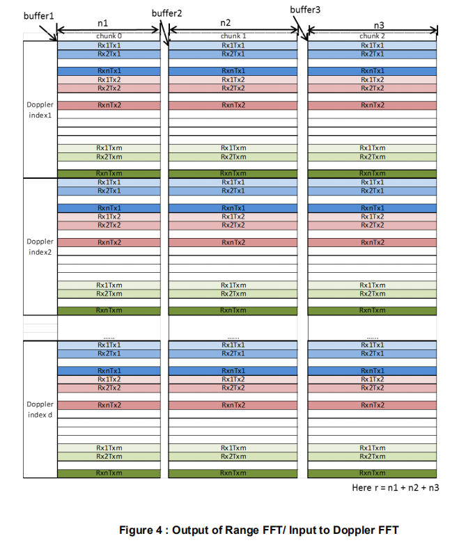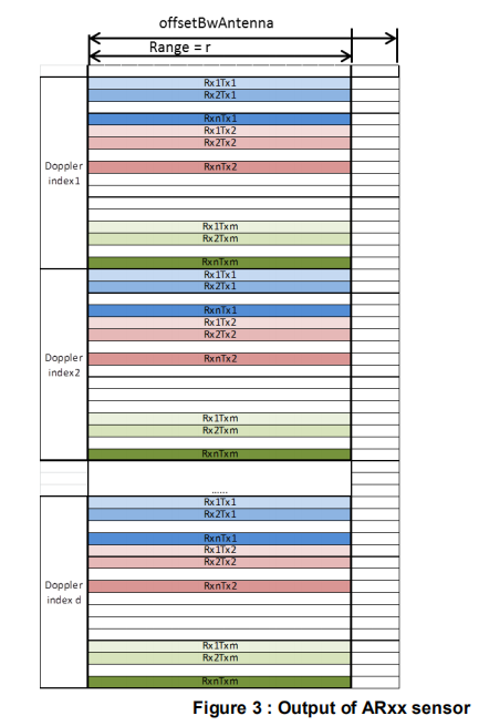 目前我这边在研究级联雷达在MIMO和BeamForm工作模式下的采集数据。 在研读EVE_Applets_UserGuide.pdf时,发现了有MIMO采集数据的结构说明(如下图所示,个人说明:从图中可以分析,当发射天线TX1进行发射时,接收天线Rx1-Rxn进行同时接收,从此处断定此图说明为MIMO模式)。