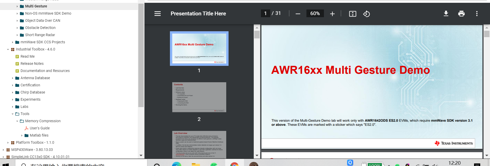 而且AWR1642的手势识别demo是基于ODS板,天线设计和BOOST不同。