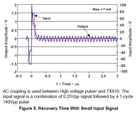 你们好!我买了TI的TX810收发开关,用于超声接收电路,当按照技术手册上输入信号为5M,峰峰值为3V的信号时,经过TX810出来的信号有明显的衰减,但是输入信号为几百mv的信号时,这个信号通过不了TX810,想问下是什么原因?(供电都正常,中间pad接的是地)
