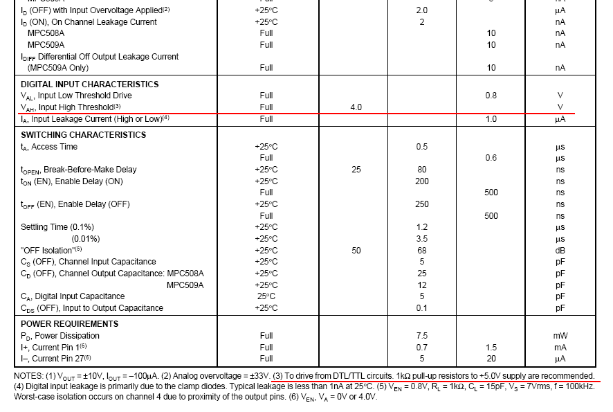根据MPC508的DATASHEET的page 2可以看到,高电平的阀值是4V,而上限没有标明,按我的理解接5V应该是没有问题的吧