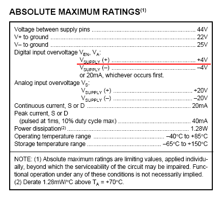 但是在DATASHEET的page 3的ABSOLUTE MAXIMUM RATINGS表格中可以看到,最大限值也是4V