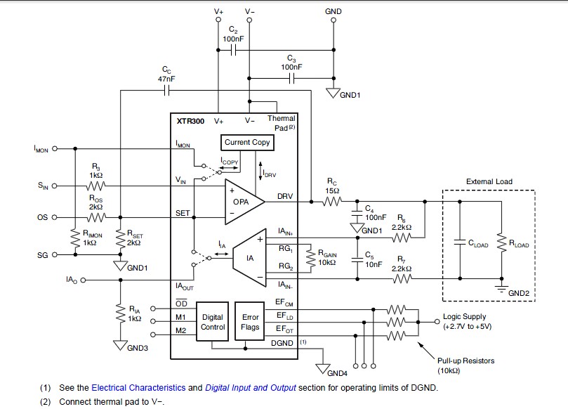 Imon和Iaout输出都是电流,模拟地GND1,GND3是可以接在一起的,GND2是负载地,也是模拟地,这三个地我认为是可以接在一起。