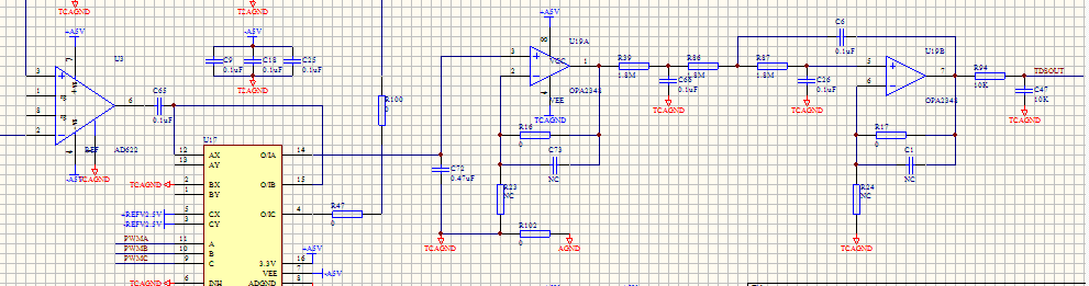 上面一张是原理图,下面的图片是74HC4053中的PWMA/B/C的时序图,当PWMC是高电平时,AD622采集到的电压是负值(假设为-1V),当PWMC是低电平时,AD622采集到的电压是正值(假设为+1V),经过PWMA/B控制C65/C72使得TDSOUT=2V(1+|-1|=2V),PWMC频率为1KHZ,这个电路 我搞不明白电容那块是怎么工作的,你帮我分析下