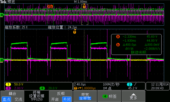 • 亲;前半部是正常开关,后半部反弹;是小电流下寄生RLC感应。是在窄脉冲时发生的正常波形。