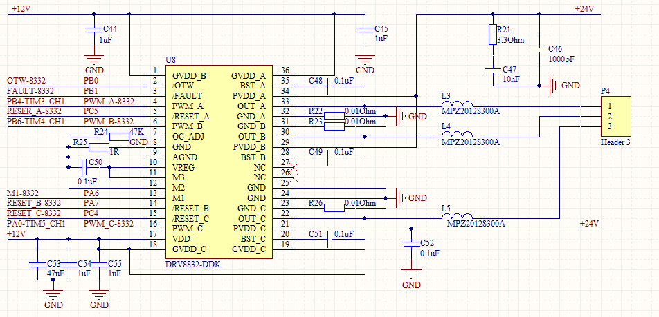 DRV8332输出问题 首先是24V立马跳变到了12V