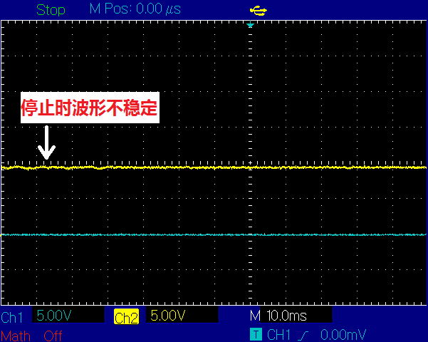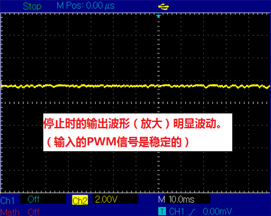 输出波形是经过低通滤波,所以转的时候是正弦波形,停止时保持不动即直线。问题就在于这直线有波动。