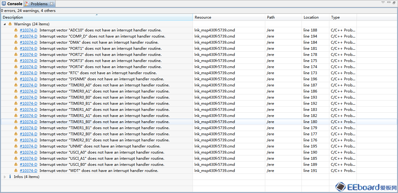 是CCS提示你,有些中断向量你没有使用,但是在cmd文件中定义了相应的中断。