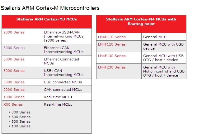 那款MCU?Stellaris® ARM® Cortex™-M3 的 MCU吗?针对不同的应用选择不同的系列。看附件