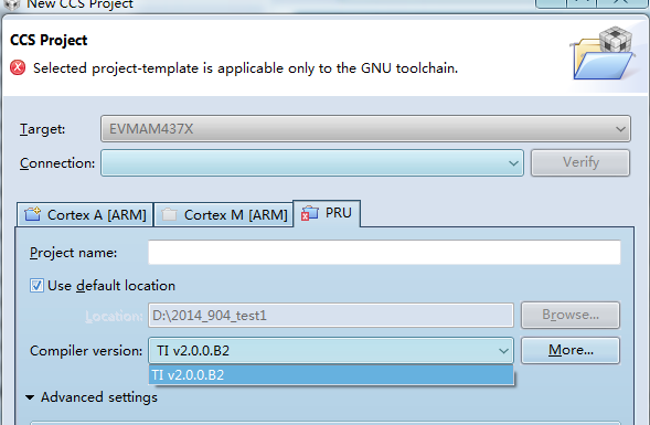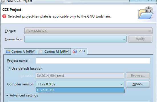 但是下拉选项没有GUN 前面的Cortex A 的核心 选择的GUN 创建没有问题 就是 PRU 无法创建