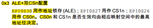 EPI_HB16_CSCFG_ALE_DUAL_CS | // EPI30作为ALE,EPI27和EPI26分别作为CS1和CS0