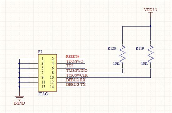 各位大神,我自己画的板子,想使用TM4C1294 Connected LaunchPad 上的仿真器,JTAG连接图这么画对么?