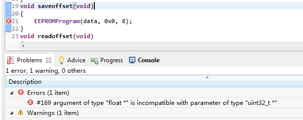 数据类型不兼容,是不是data,函数定义的时候是uint32_t,参数里面调用的data是float。。。。