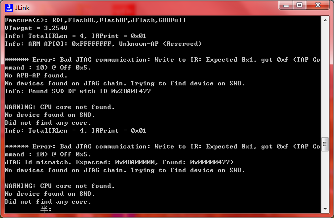 如果默认是内部RC时钟,那为什么我的JLINK连不上呢?这是JLINK的信息,帮忙看下什么问题,谢谢!