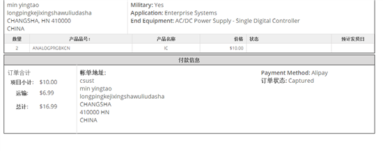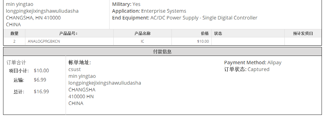 状态: Order Placed - In Work | 已付款: $16.99 | 未付款: $0.00 |
