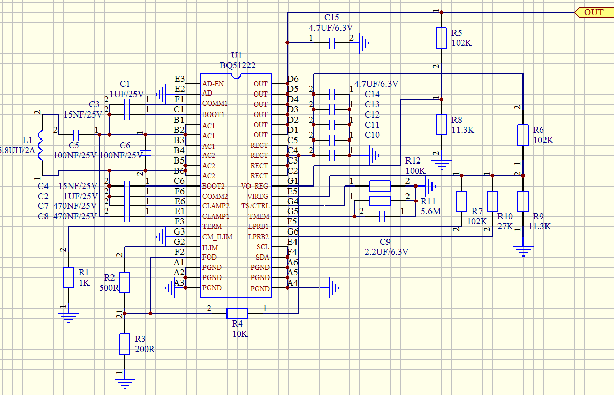 请问BQ51222的电流带载不上去,Rlim设置的500欧,下面的是200欧,按照规格书里面的一共加起来700欧,这样带载只能到100ma,另外FOD脚需要加滤波电容么,另外附件是我的原理图,帮忙看看有没问题
