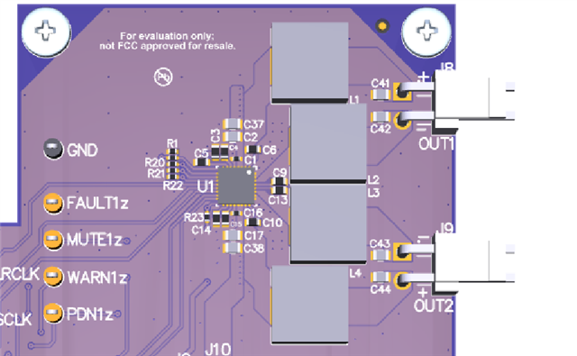 1、According to the EVM board design, the power amplifier module was integrated into the project. Without adding a heat sink, when a 4R load was connected to the AP analyzer, the chip temperature rose rapidly to 170 degrees Celsius within one minute and then shut down. I noticed that the EVM on the official website does not have a heat sink. Could you please tell me if this temperature rise is normal? If it's not normal, what are the possible ways to troubleshoot the issue? Below is my circuit diagram. Figure 1 is a partial schematic diagram, and Figure 2 is the corresponding PCB.