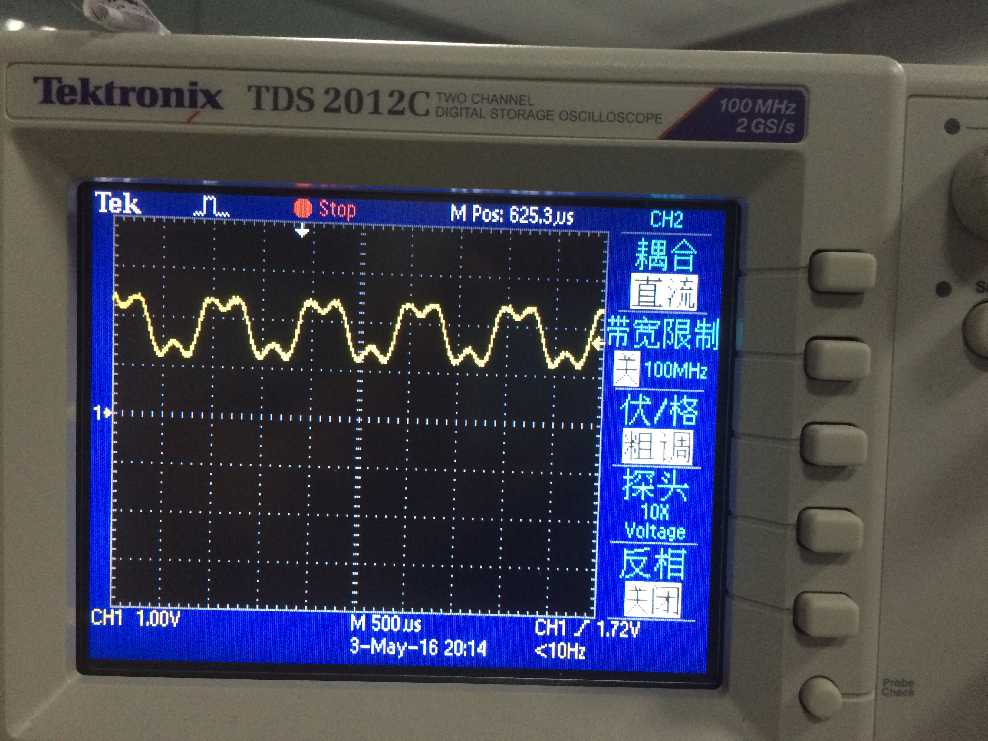 我现在正在做有关语音编解码项目,做到语音编解码闭环调试,由TMS320C6455和CODEC芯片(TVL320AIC12K)组成,CODEC作主机,由C6455的I2C配置CODEC的寄存器,配置完后CODEC的SCLK和FS分别能输出时钟,然后由C6455的Mcbsp接口实现数据交互,时钟和帧同步信号由CODEC提供。现在出现的问题是在CODEC的输入端接入1KHz,峰峰值为10mV标准的正弦信号,首先由Mcbsp获取到输入信号转换而成的数字量,其信号为正弦信号,但将获取的数字量发送出去,CODEC的输出信号有异常,和正弦信号类似,如贴图所示,始终找不到是什么原因!其中CODEC的寄存器配置数据为:CR1(0x41),CR2(0x20),CR3(0x01),CR4(0x83),CR5(0x20),CR6(0x00).