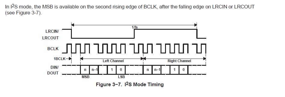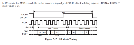 我想用stm32来控制aic3254,通过i2s接口来接收数据,i2s协议标准一般有Phillips标准、左对齐、右对齐等区别,但是在aic3254中没有看到此类描述,也没有完整的时序图。想来询问一下aic3253的I2S完整的时序图及接口协议如何设置。