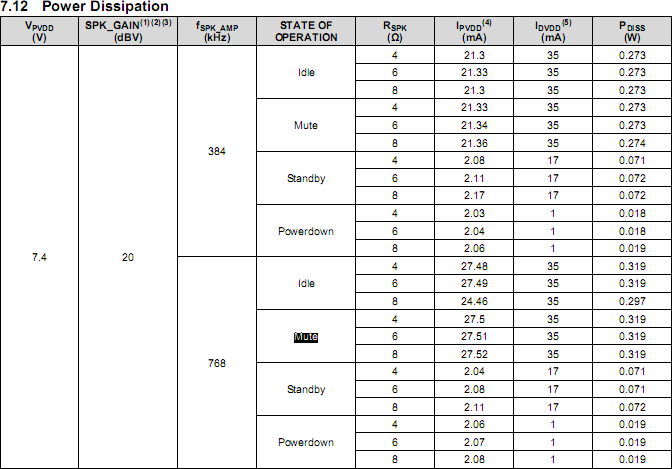 向TI的各位专家请教一下,TAS5754M的功放的待机和静音电流分别是多少,在规格书中是否有给出?谢谢!