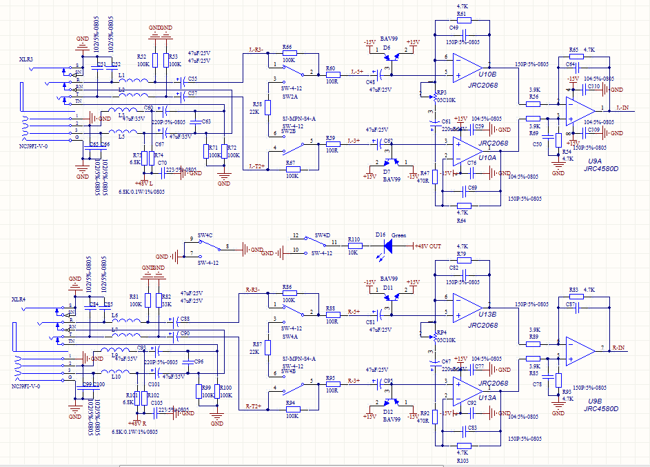 TI工程师你好!~ 我用PCM2904DB 做声卡,从Vin R输入没信号,帮我看一下原理图有没有问题。