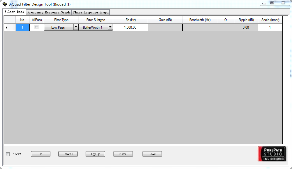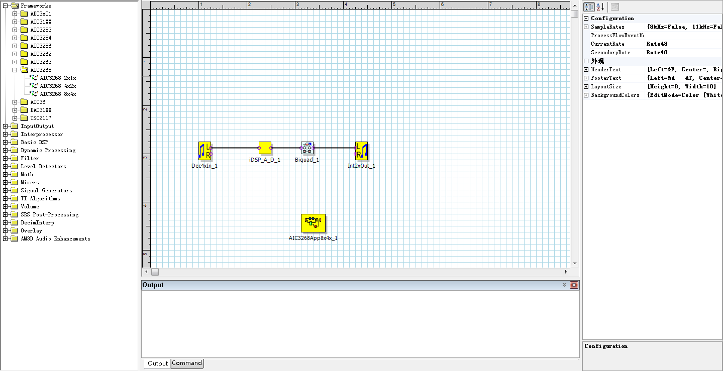 要实现的功能是mic输入通过IIS接口转换成数字音频,这个功能已经实现,但是发现转换语音的过程中有底噪,所以想要加入滤波器,现在的问题是用purepath软件做了个简单滤波器,用此软件生产的 reg_value miniDSP_A_reg_values[] 数值植入到自己的程序中,debug调试发现只要写入了miniDSP_A_reg_values[] 数值,不管模拟mic是否有输入,IIS输出就变成了 固定值(只有低几位在变化),不同频率,带通,低通,高通都试过了!!!下面是PUREPATH的截图,是设置的太简单了?还是哪项参数有问题呢?