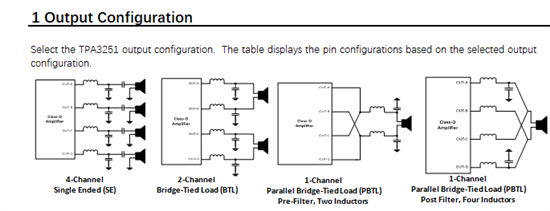 我参考了TPA3251 Setup Guide & Configuration Tool,PBTL模式输出接两颗电感,和接4颗电感相比不知道这样配置有什么缺点,请指导;这样配置的优点就是少用两颗电感,占空间小一点,因为PCB尺寸有点小