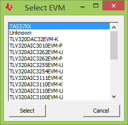 打开CodecControl,选File->New EVM Simulation,在下图的Select EVM里面有TAS57XX的选项,但是点Select后弹出“系统找不到指定的路径”的错误。