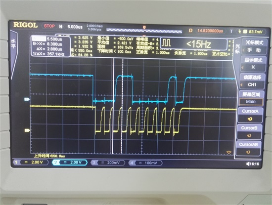 I2C在3559端已经有了4.7k的上拉,I2C的波形图如下,没有ack: