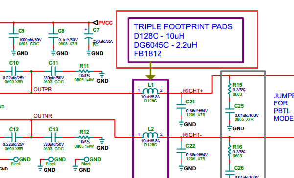 2、电感电流选择怎么选的?如果是BTL,4欧姆负载。按极限电流算纯电阻做功,每通道都是130W左右了。标的是50W。余量大概是多少?