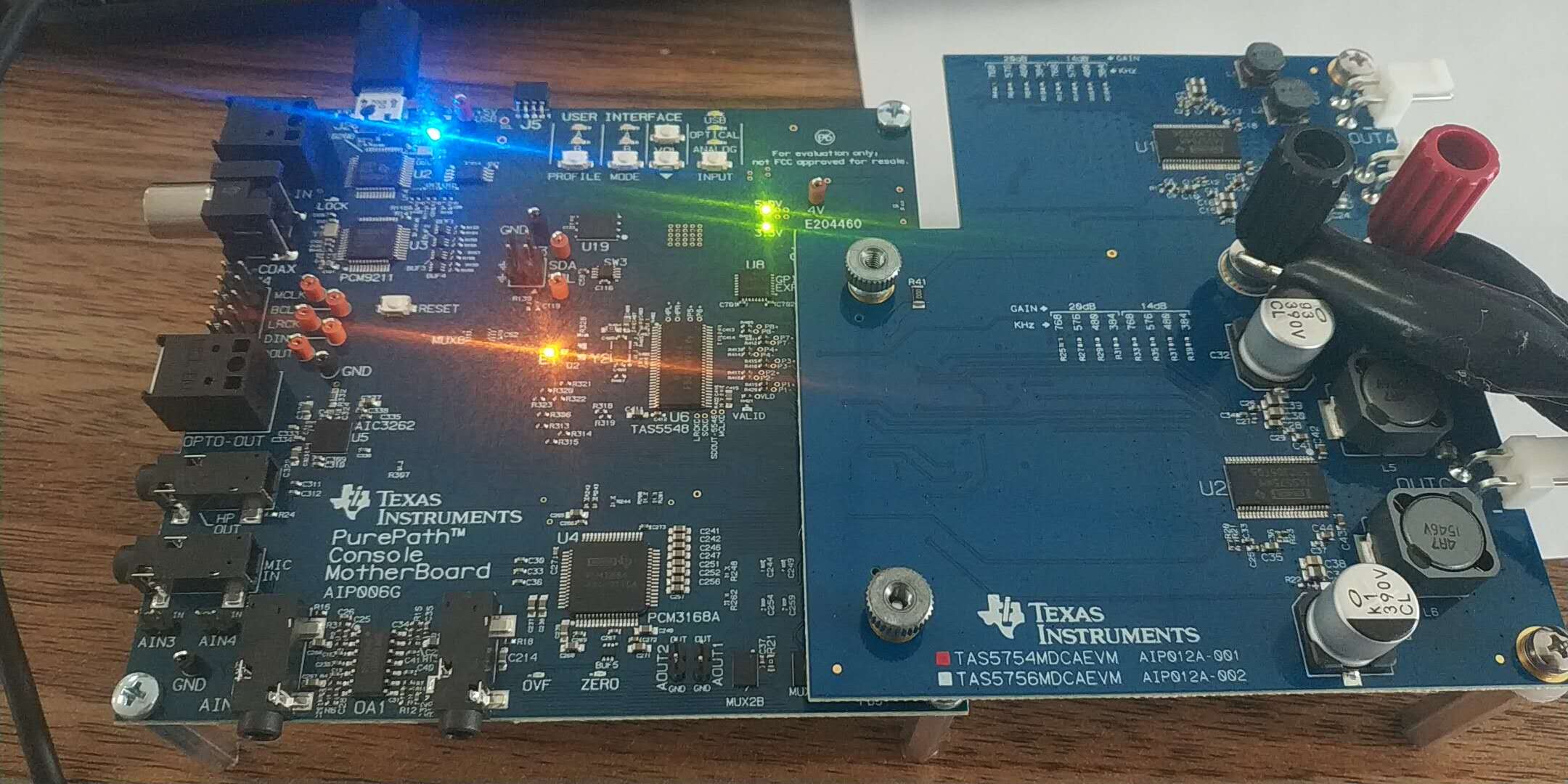 我在某宝购买了 开发板:PurePath Console Motherboard Rev F、 TAS5754MEVM、TAS5756MEVM