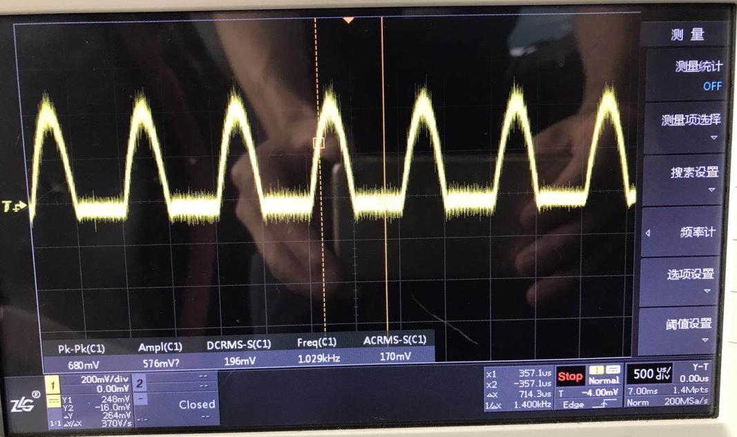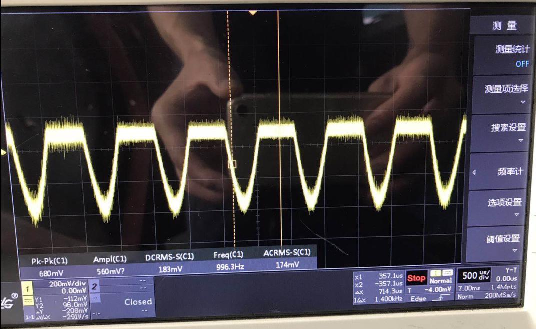 现在调试问题如下:播放标准1KHz音频文件,输出正弦波只有下半波,修改了D13,20h寄存器,波形就出现了翻转,变成只有上半波,输出幅度在500mV左右。